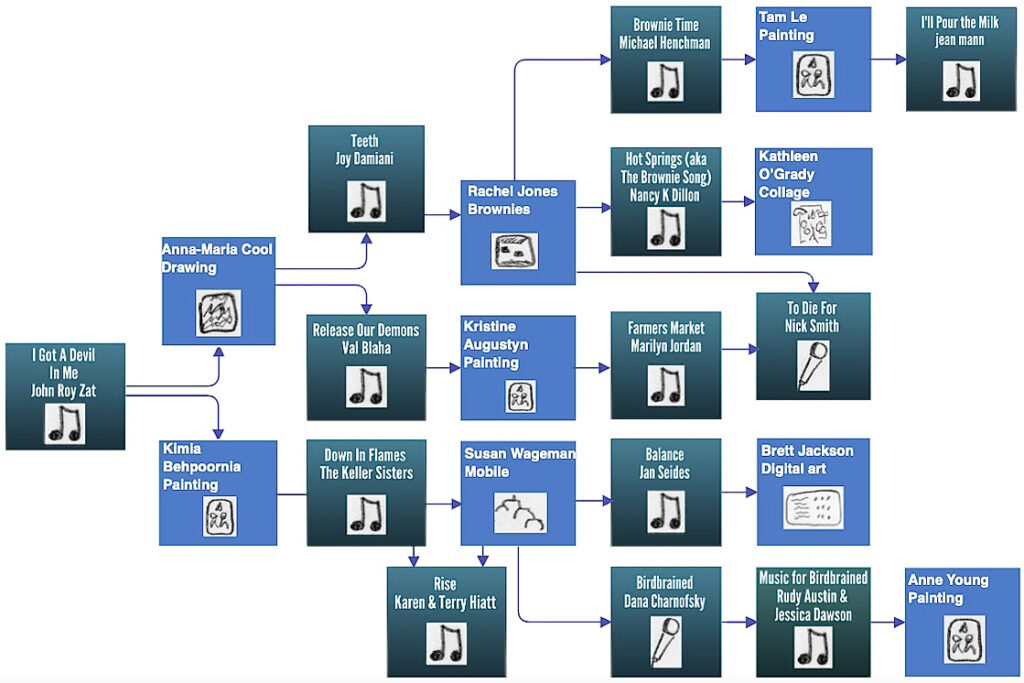 Below are all the songs, stories and artworks that have sprouted from this thread so far. Click on any image to dive in. The info below any image probably has some links in it–hover over the words to find them. All songs, stories and images are copyrighted by their respective creators. No being a jerk!