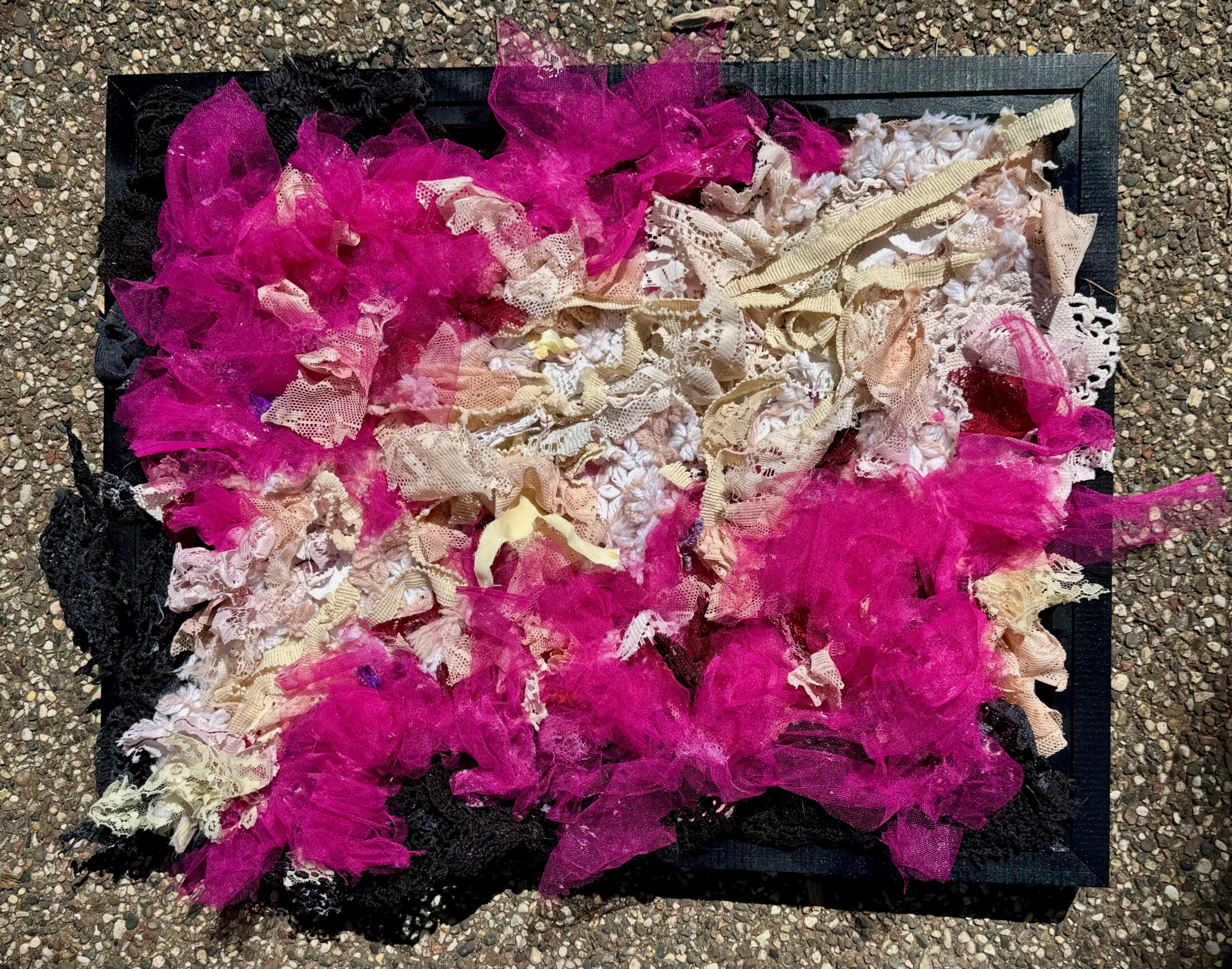 Reggie Garrett's song Such A Lovely Time also prompted Minneapolis artist Heather Meyer to create this textile collage, which she named Soft Geode. I've never seen anything like it.