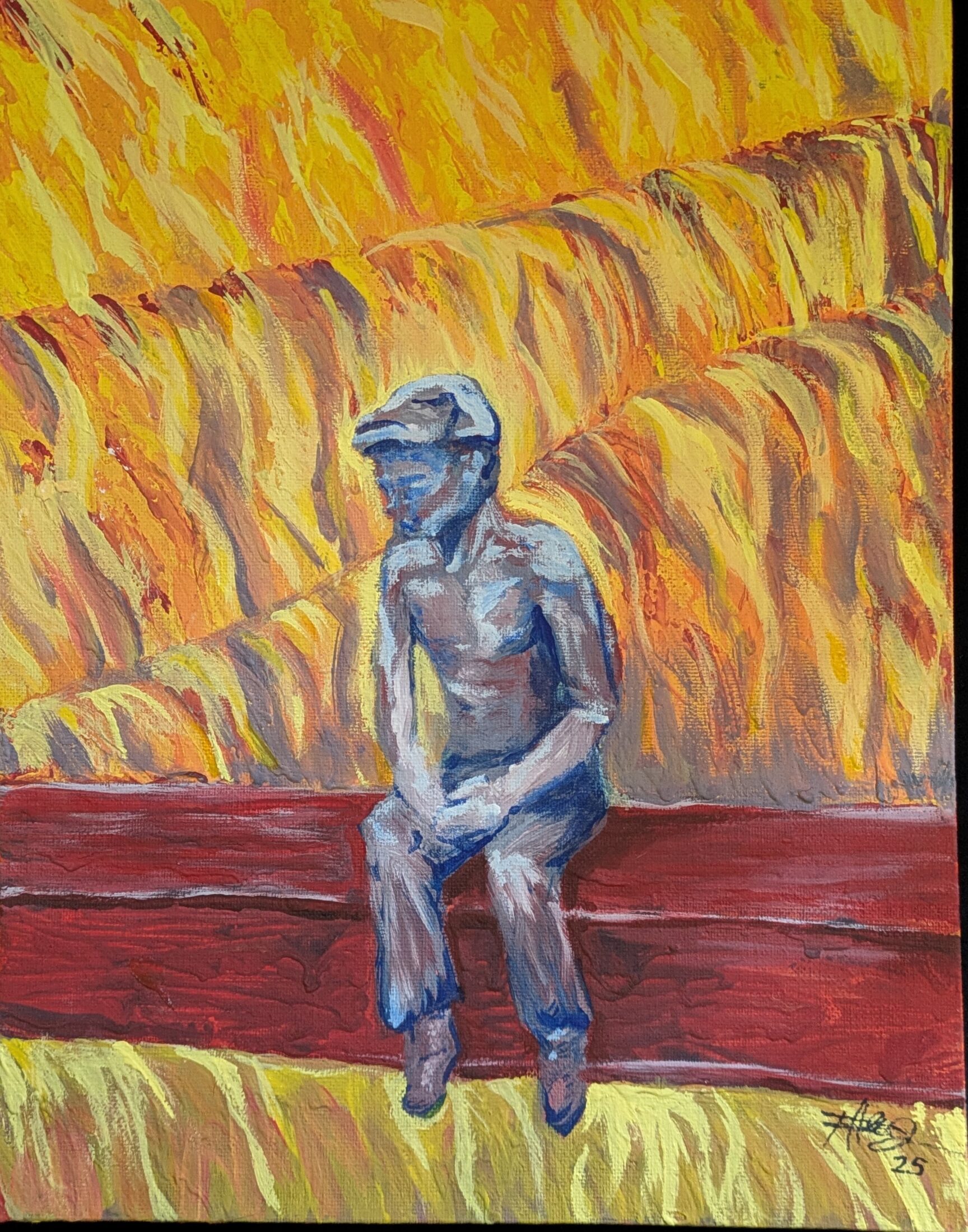 Renee Holliday Kevin Kelso's song 93 Million Miles Away inspired Long Beach, CA artist Renee Holliday to create this haunting painting, entitled The Far Away Man. Renee can be found on IG @_cant.be.bothered_